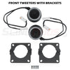 - 25mm silk dome tweeters with built-in crossovers and custom bracket mounts